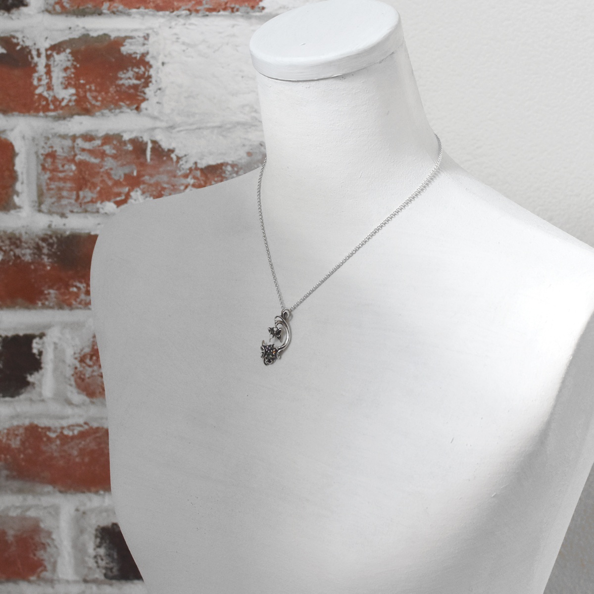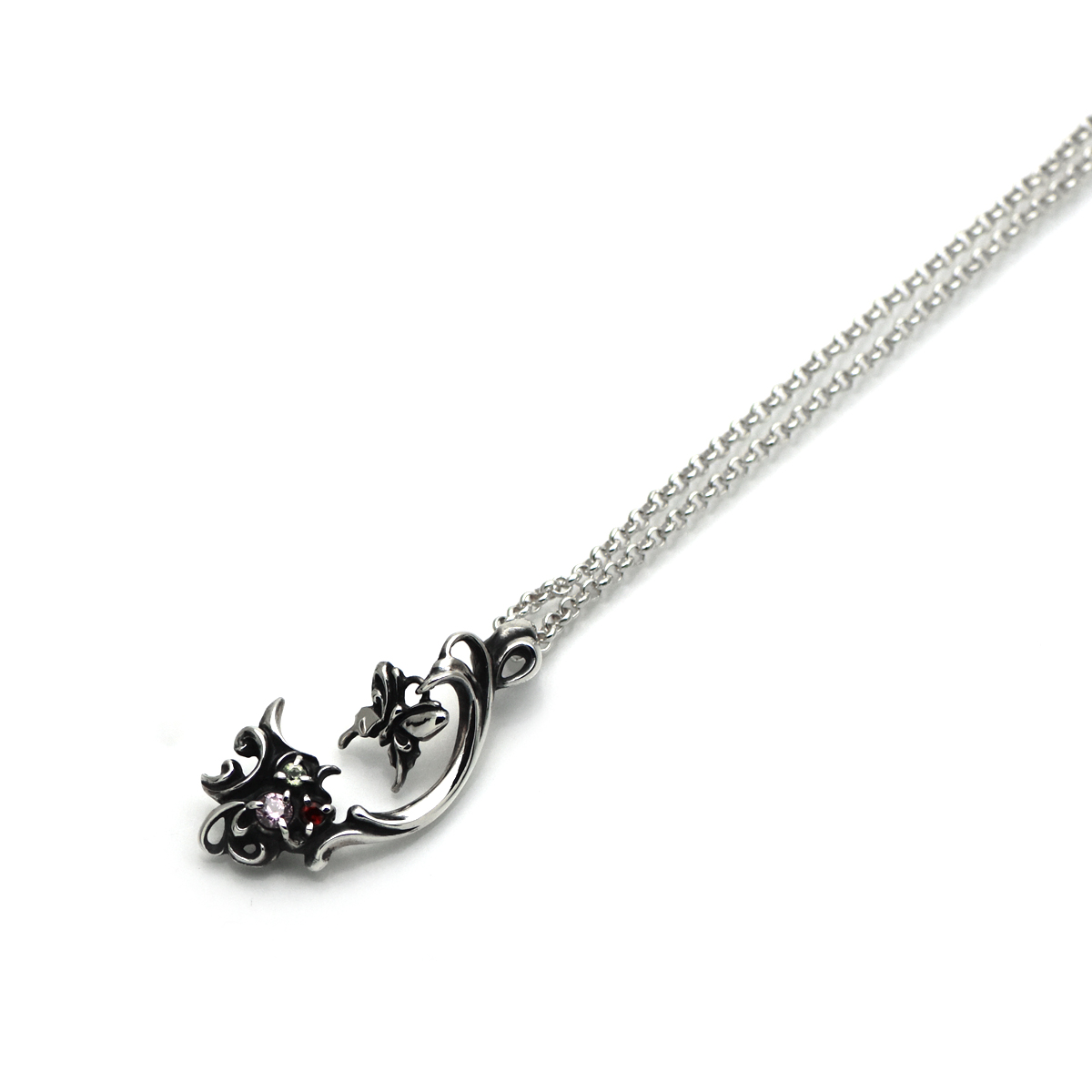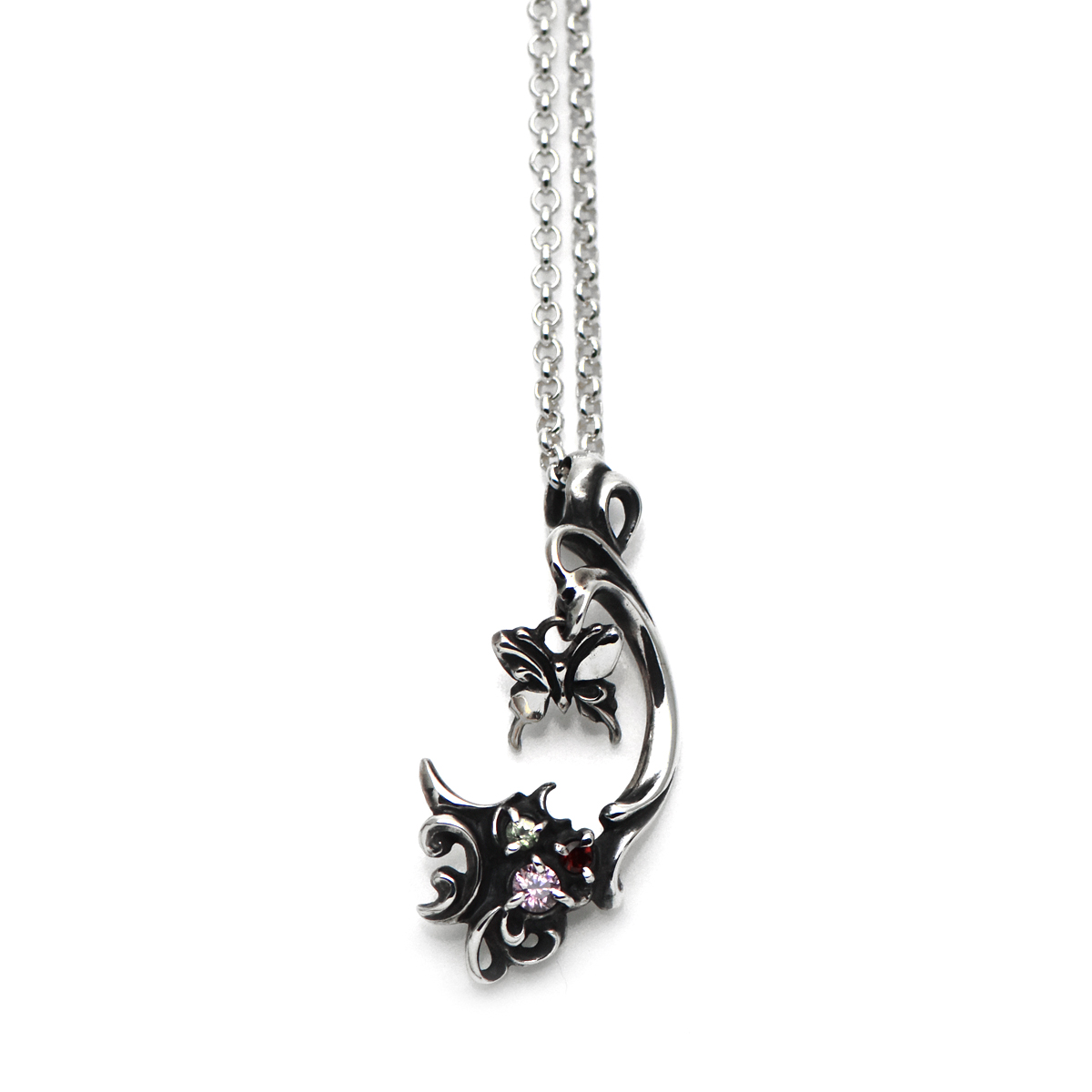 小さなアゲハ蝶と植物デザインのシルバーペンダント。