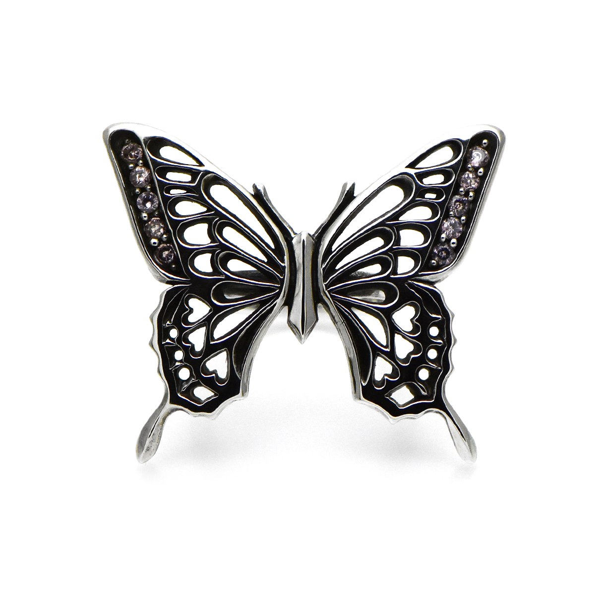 繊細な透かし模様で彫り込まれたアゲハ蝶のシルバーリング。