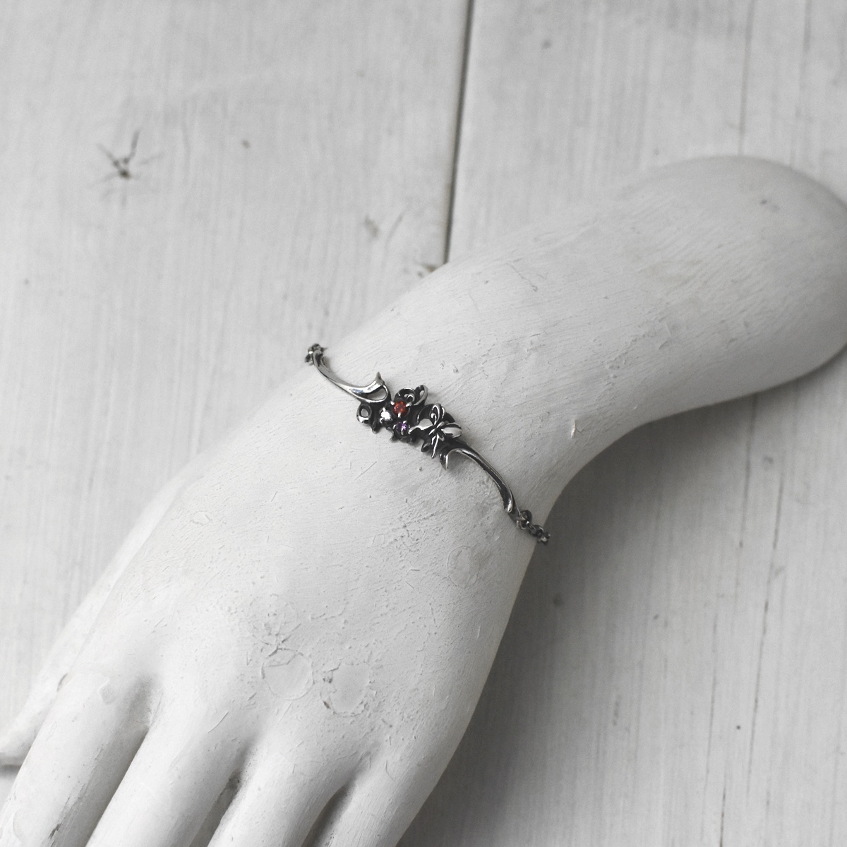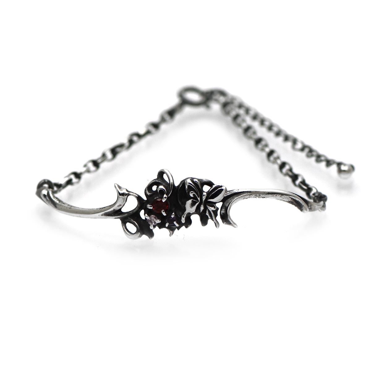 細部までつくり込まれた綺麗なラインの植物に蝶がとまっているシルバーチェーンブレスレット。