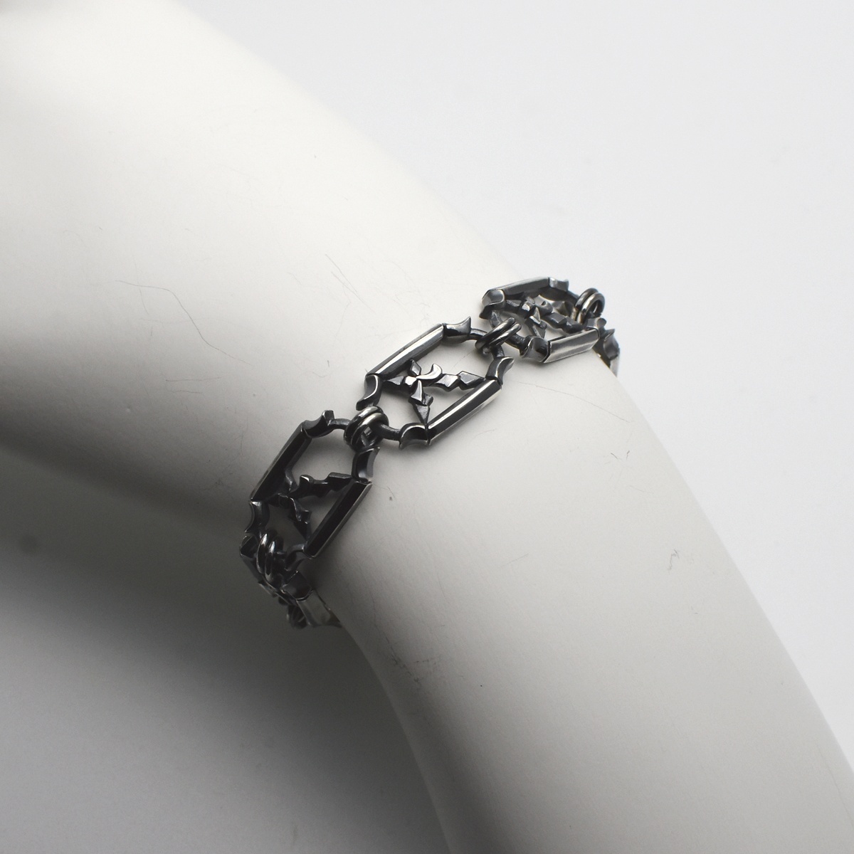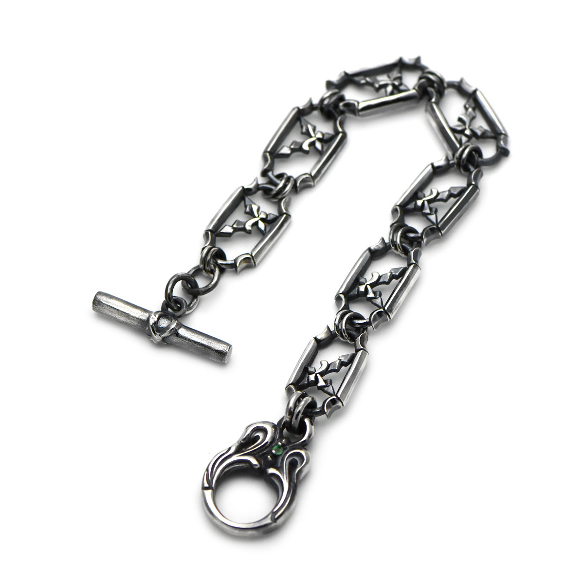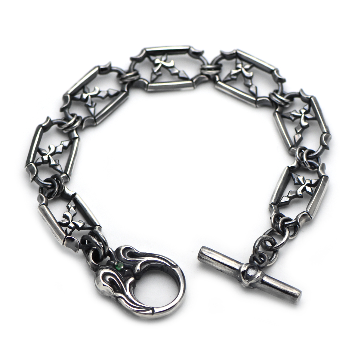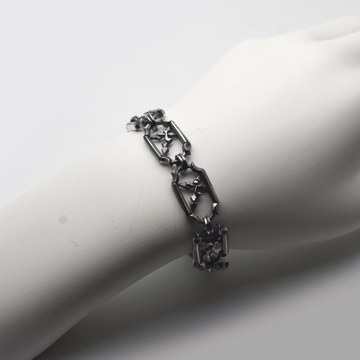 クロスデザインのパーツが連なるシルバーブレスレット。