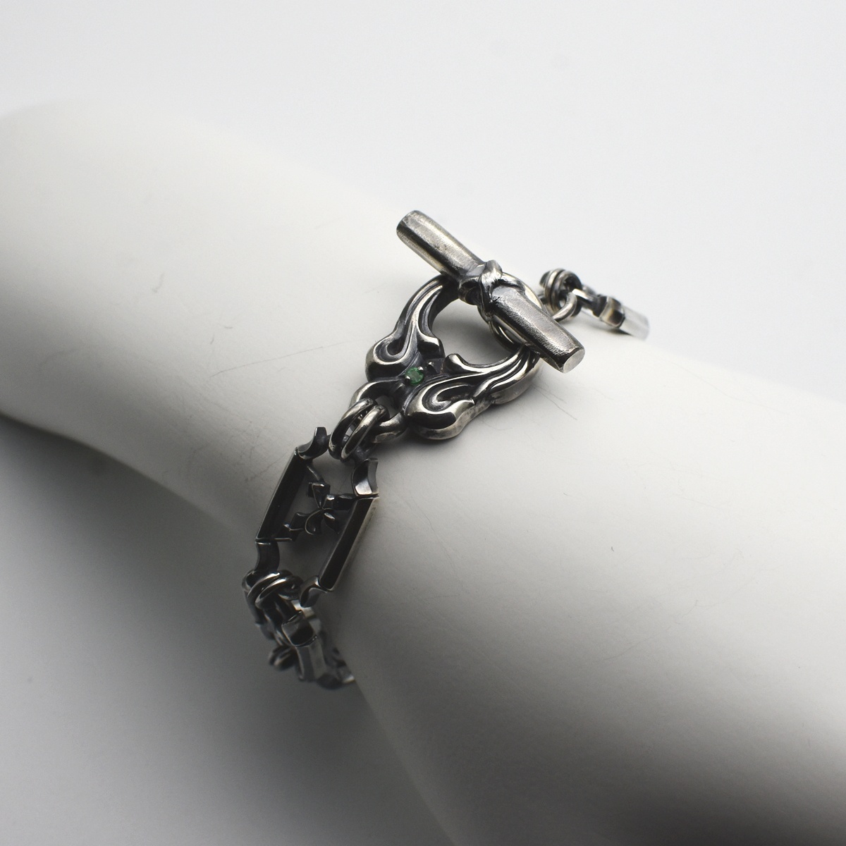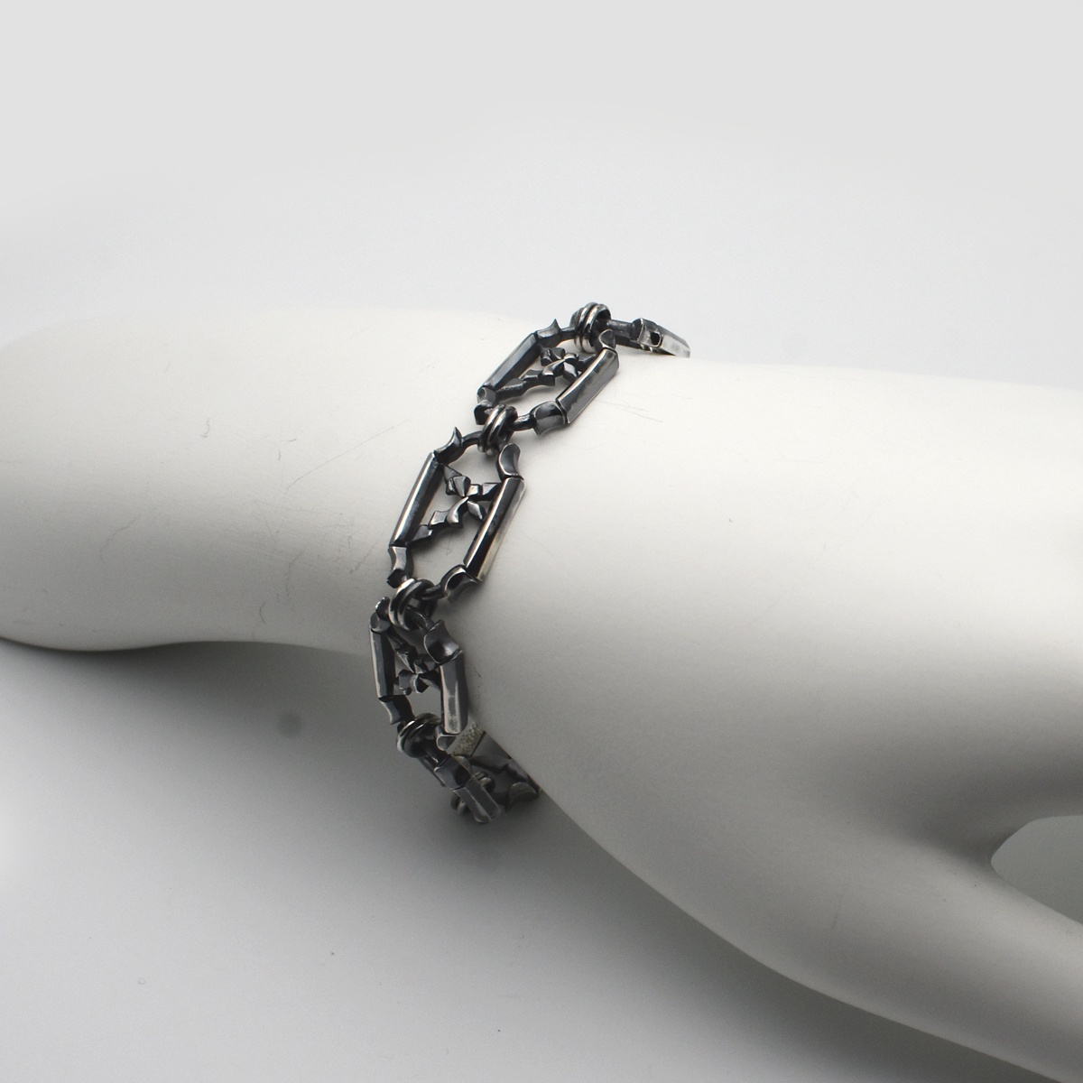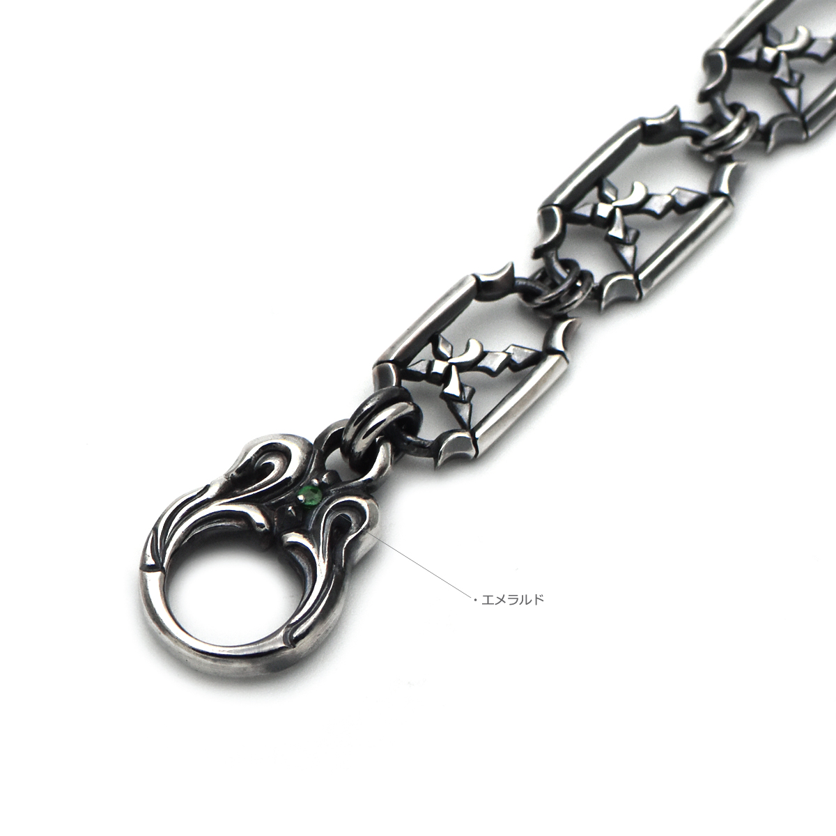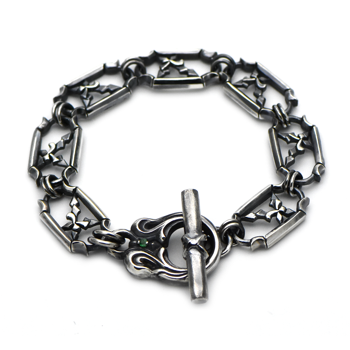 クロスデザインのパーツが連なるシルバーブレスレット。